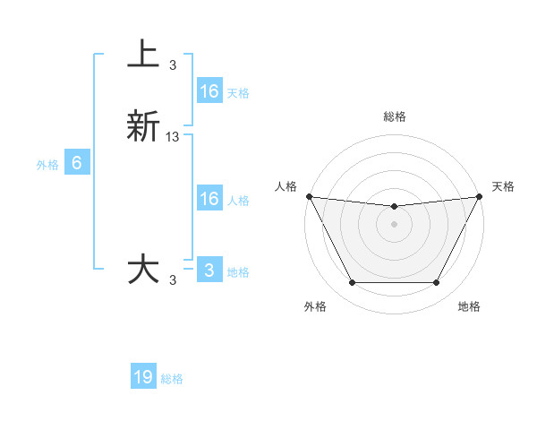 上新 大さんの天格は16画の5点!