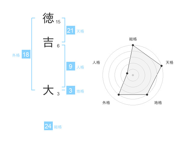 徳吉 大さんの天格は21画の5点!