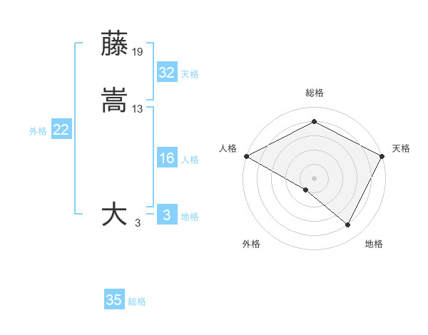 藤嵩 大さんを姓名の画数から五運を鑑定
