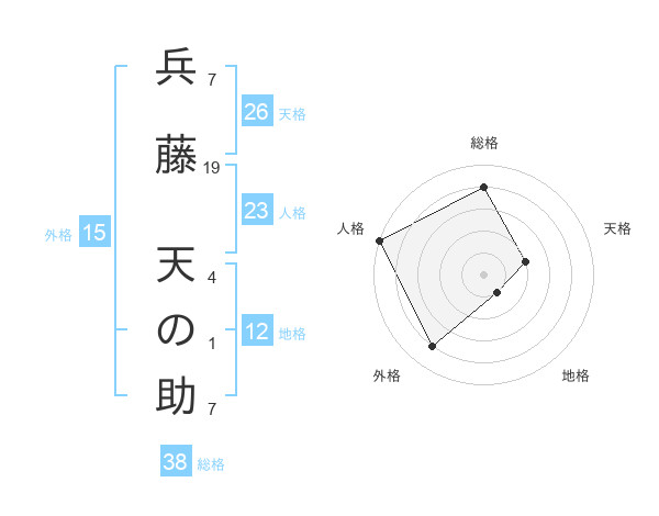 兵藤 天の助さんを姓名の画数から五運を鑑定