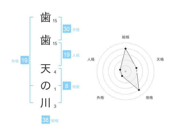 歯歯 天の川さんを姓名の画数から五運を鑑定