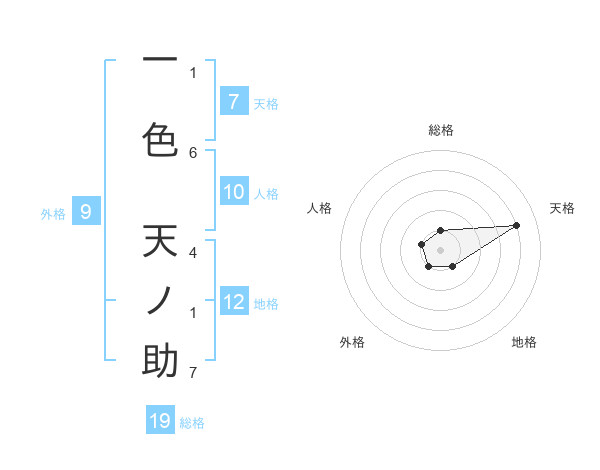 一色 天ノ助さんを姓名の画数から五運を鑑定