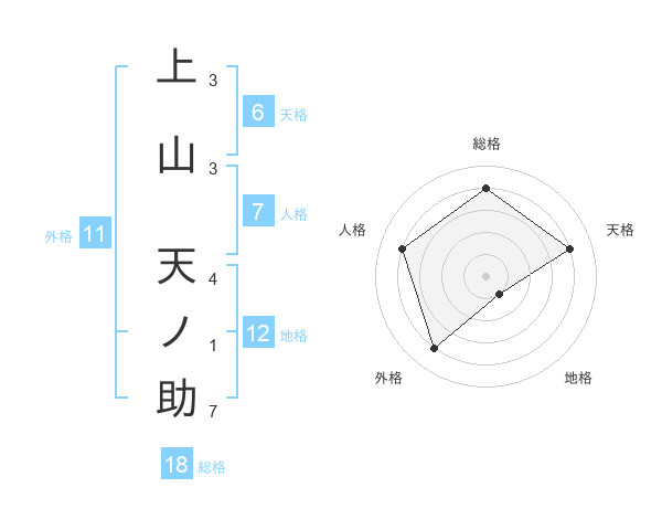上山 天ノ助さんの総格は18画の4点!