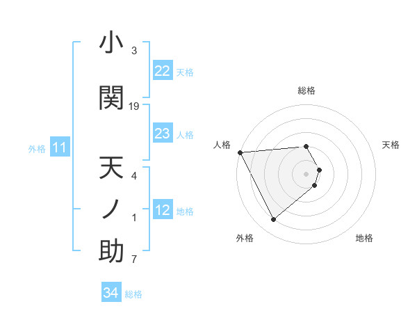 小関 天ノ助さんの総格は34画の2点
