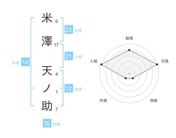 米澤 天ノ助さんを姓名の画数から五運を鑑定