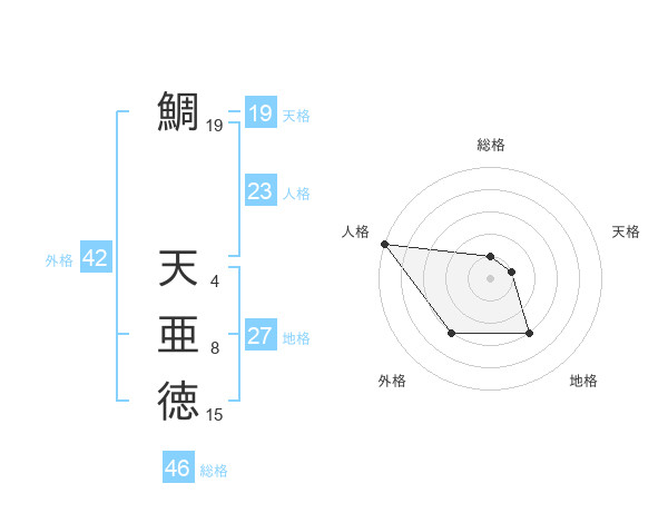 鯛 天亜徳さんの総格は46画の1点!