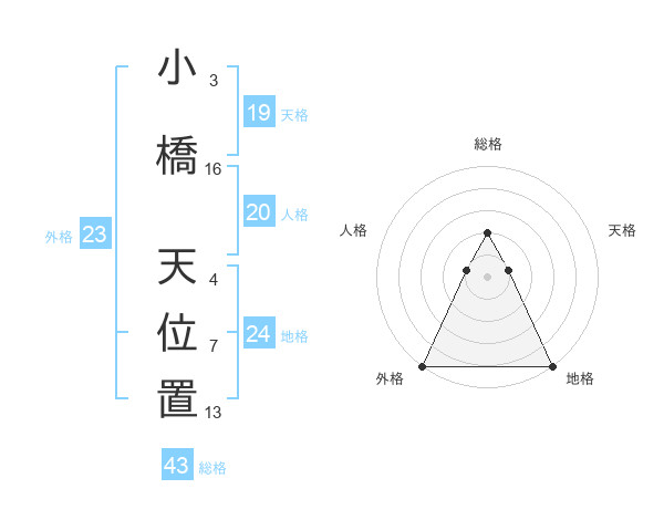 小橋 天位置さんを姓名の画数から五運を鑑定