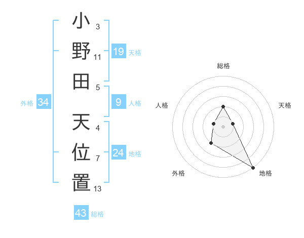 小野田 天位置さんを姓名の画数から五運を鑑定