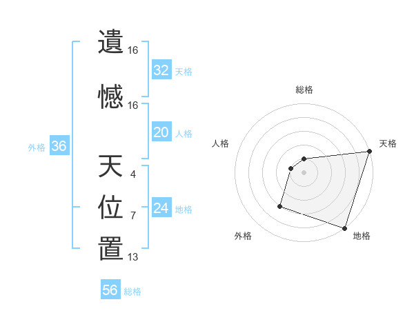 遺憾 天位置さんを姓名の画数から五運を鑑定