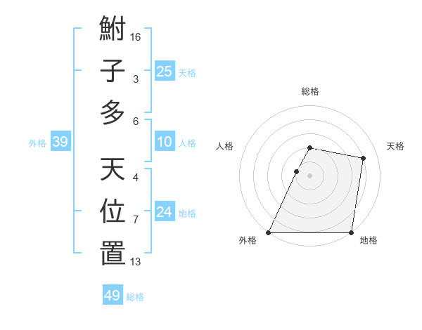 鮒子多 天位置さんを姓名の画数から五運を鑑定