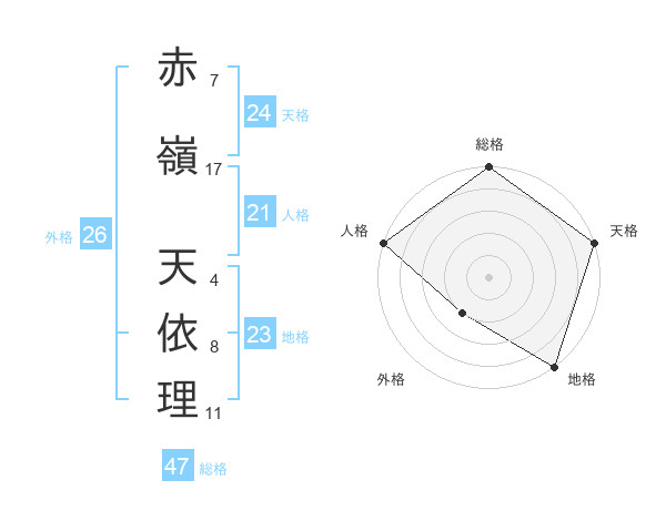 赤嶺 天依理さんの総格は47画の5点