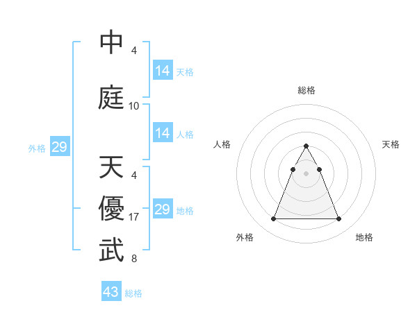 中庭 天優武さんを姓名の画数から五運を鑑定