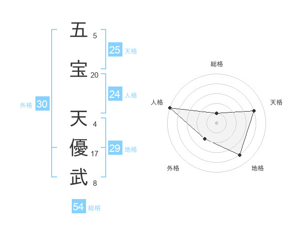五宝 天優武さんを姓名の画数から五運を鑑定