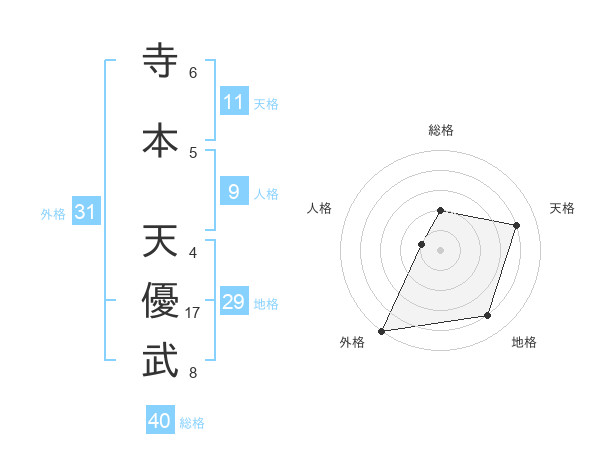 寺本 天優武さんの外格は31画の5点!