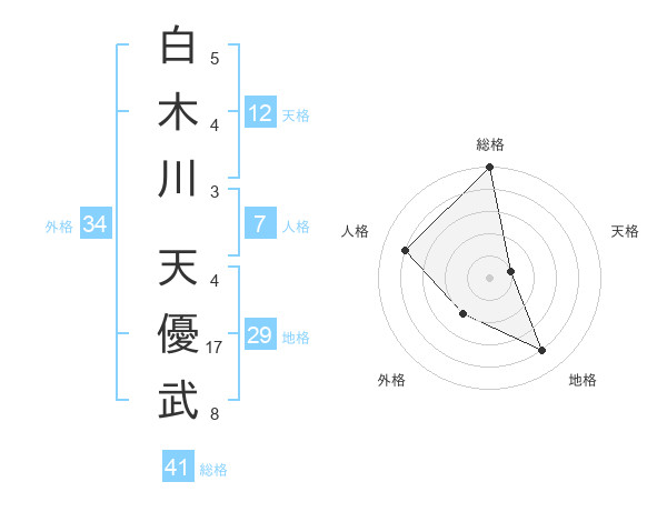 白木川 天優武さんの総格は41画の5点!