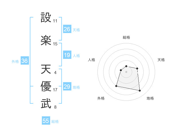 設楽 天優武さんを姓名の画数から五運を鑑定