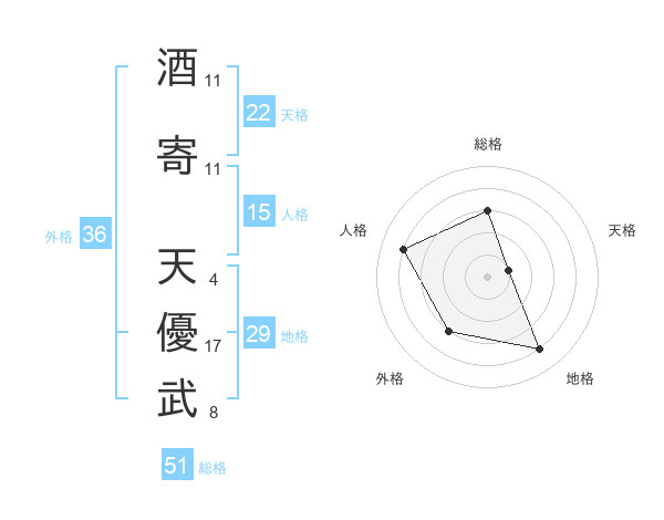 酒寄 天優武さんの総格は51画の3点!