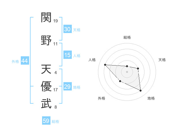 関野 天優武さんの総格は59画の1点!