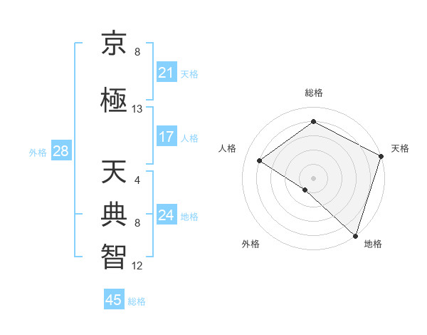 京極 天典智さんの総格は45画の4点!