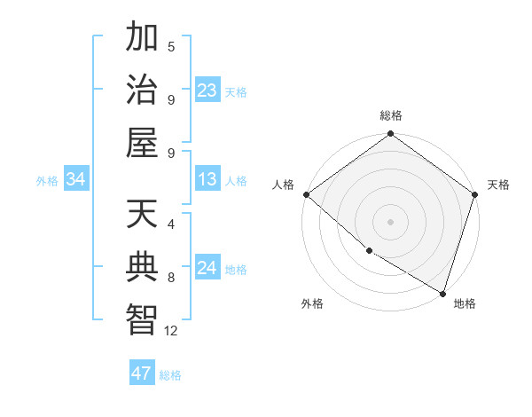 加治屋 天典智さんを姓名の画数から五運を鑑定