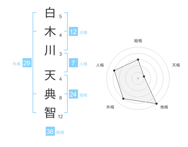 白木川 天典智さんの地格は24画の5点!