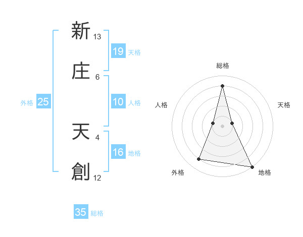 新庄 天創さんの外格は25画の4点!