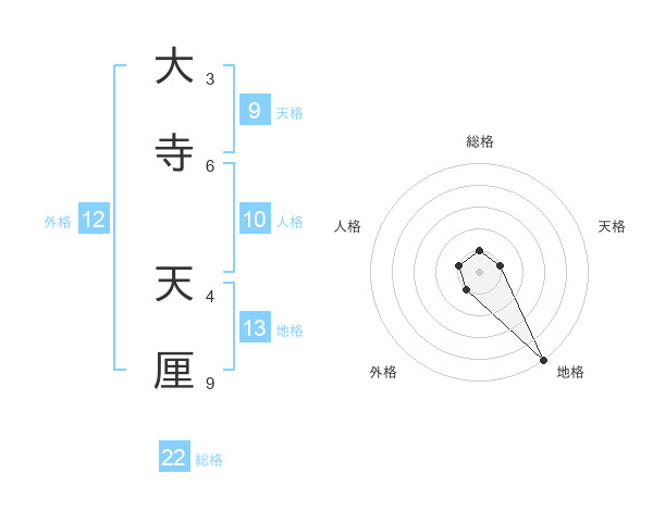 大寺 天厘さんを姓名の画数から五運を鑑定