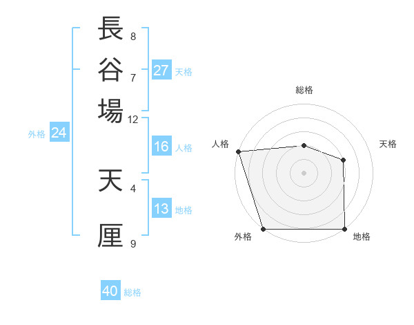 長谷場 天厘さんの外格は24画の5点!