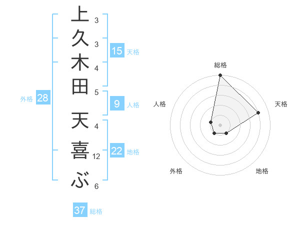 上久木田 天喜ぶさんを姓名の画数から五運を鑑定