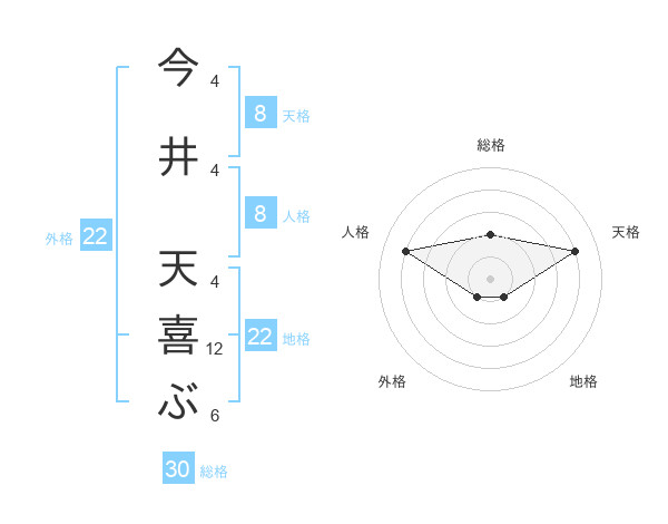 今井 天喜ぶさんを姓名の画数から五運を鑑定