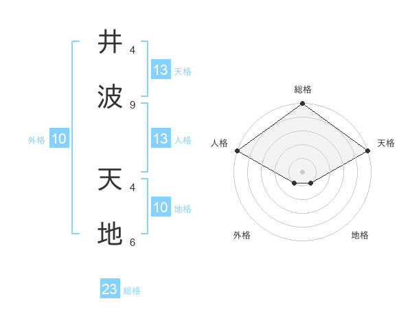 井波 天地さんの天格は13画の5点!