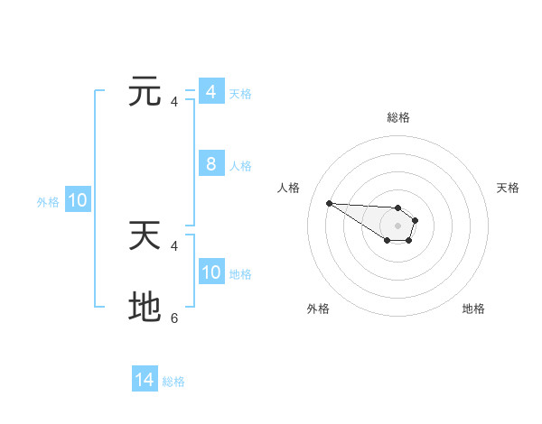 元 天地さんを姓名の画数から五運を鑑定
