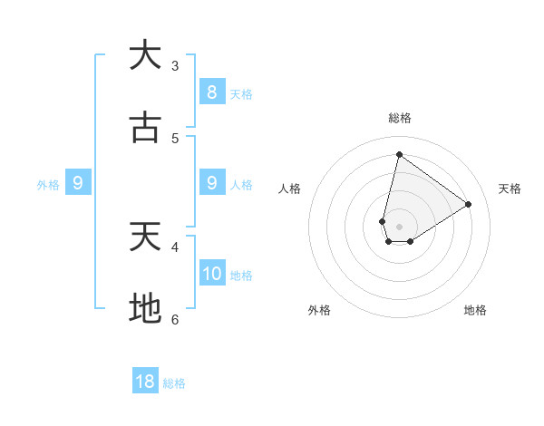 大古 天地さんの総格は18画の4点!