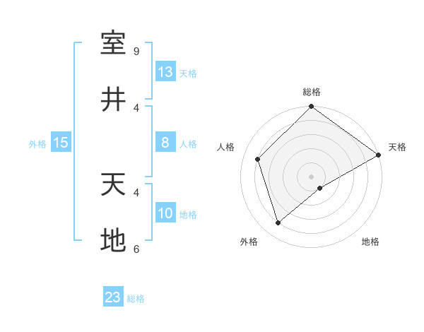 室井 天地さんの総格は23画の5点!
