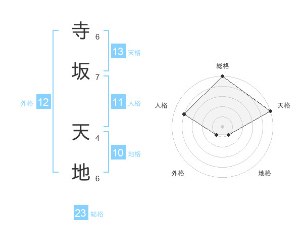 寺坂 天地さんの天格は13画の5点!