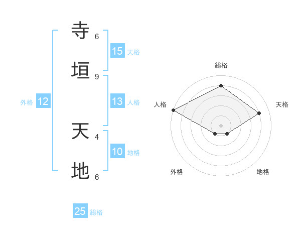 寺垣 天地さんを姓名の画数から五運を鑑定