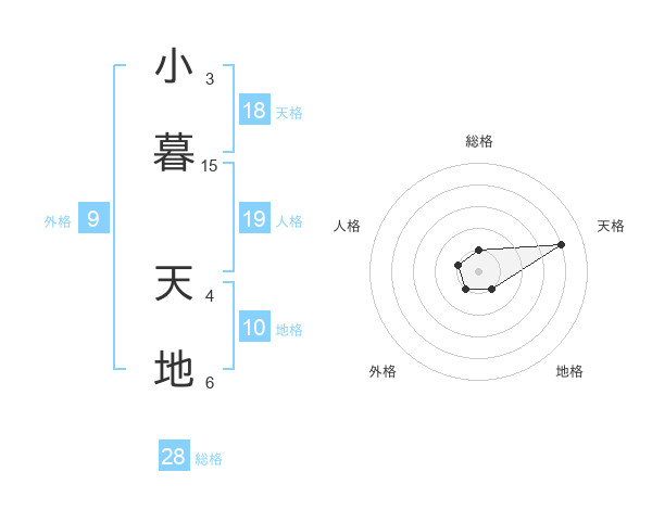 小暮 天地さんの総格は28画の1点!
