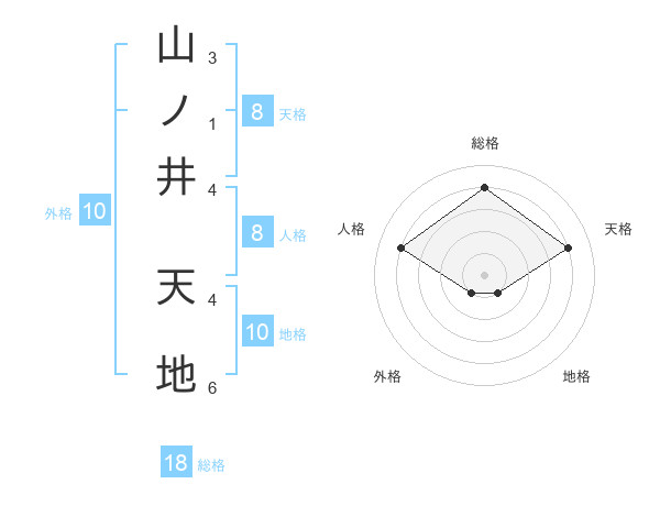 山ノ井 天地さんの総格は18画の4点!