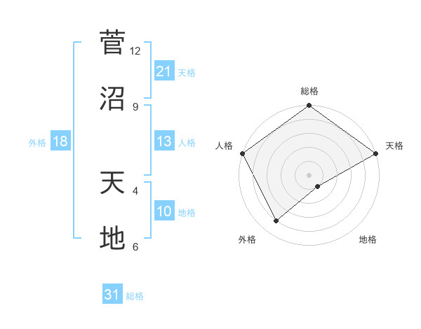 菅沼 天地さんを姓名の画数から五運を鑑定