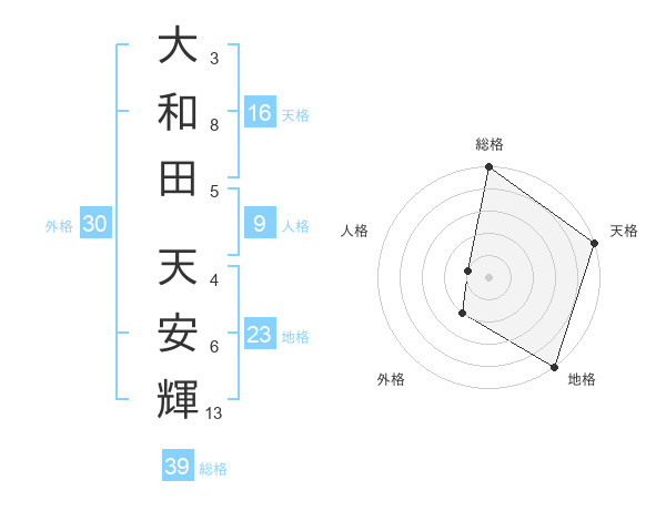 大和田 天安輝さんの天格は16画の5点!