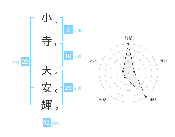小寺 天安輝さんを姓名の画数から五運を鑑定