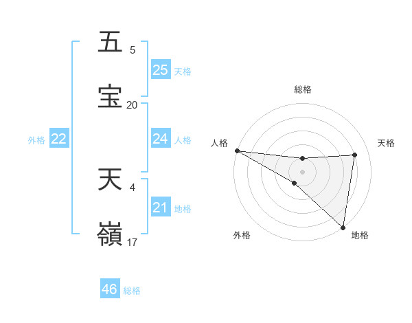 五宝 天嶺さんを姓名の画数から五運を鑑定