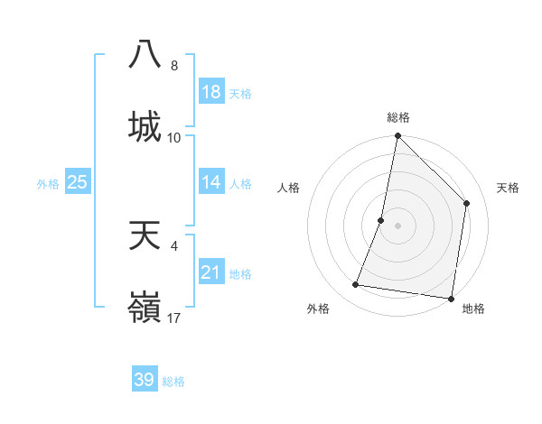 八城 天嶺さんの総格は39画の5点!