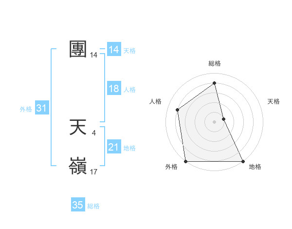 團 天嶺さんの外格は31画の5点!