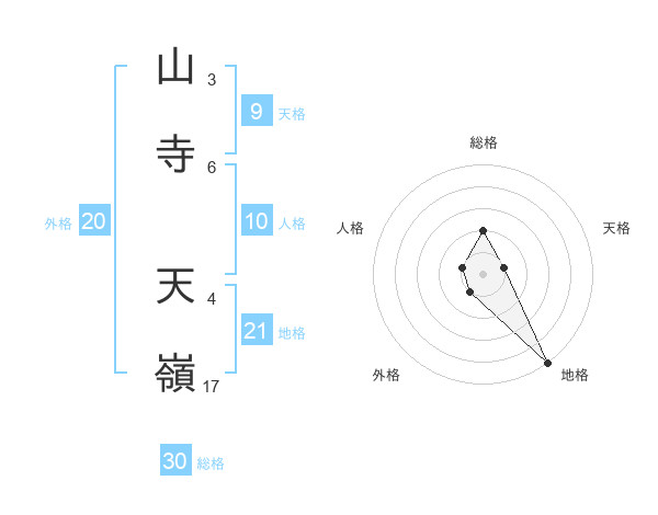 山寺 天嶺さんを姓名の画数から五運を鑑定