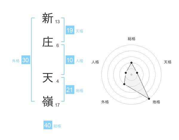 新庄 天嶺さんの地格は21画の5点!