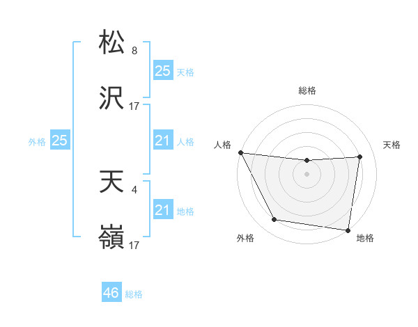 松沢 天嶺さんの地格は21画の5点!