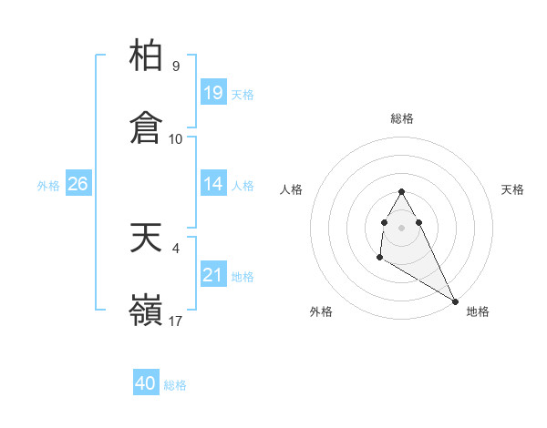 柏倉 天嶺さんの総格は40画の2点!