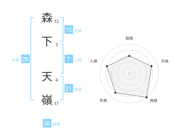 森下 天嶺さんの総格は36画の3点!