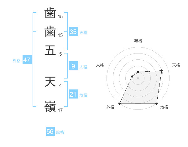 歯歯五 天嶺さんの名前の鑑定結果は!